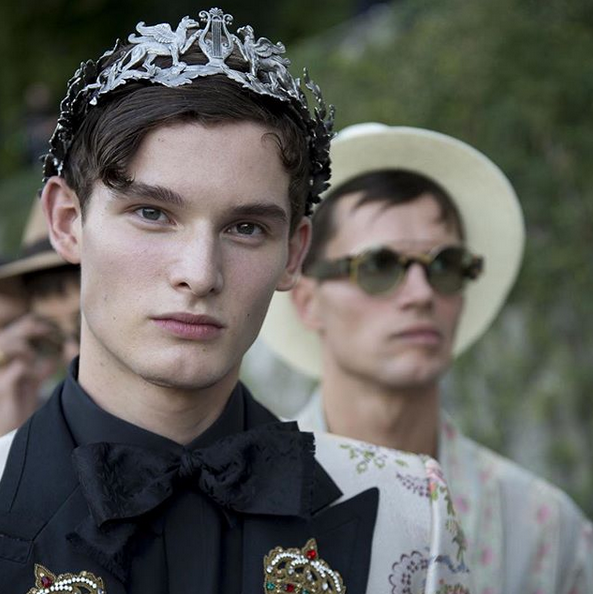 Villa Carlota, ubicada en la ribera del Lago, brilló con la colección de prendas única, conducida por una orquesta de cuerdas para hacer sentir en casa a los mas de 120 modelos en acción, entre ellos el mexicano Jonathan Valdez. Los accesorios robaron las miradas en el front row, magnos lentes, prendedores con cruces y armaduras antiguas, coronas de laurel y estampados con motivos religiosos y florales armonizaron el desfile en un solo compás.